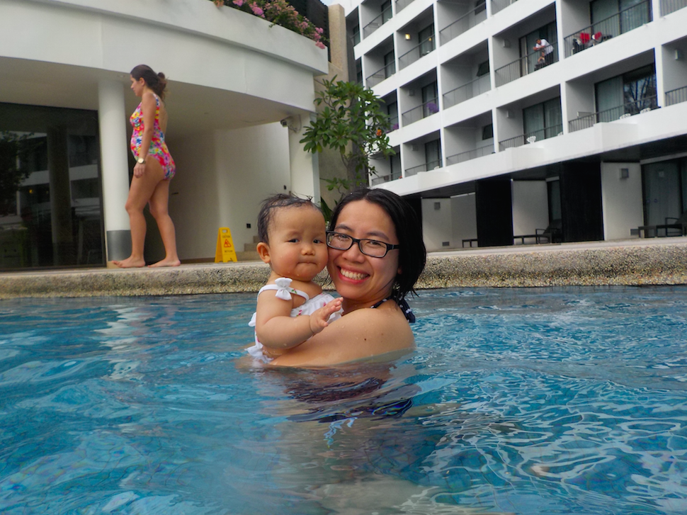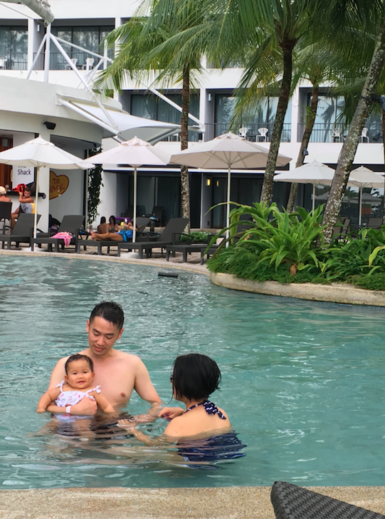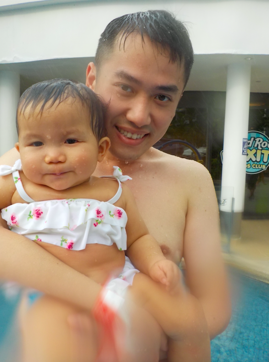 上水冇耐曉就眼瞓,居然婆婆抱住就咁係泳池邊瞓著咗,有婆婆睇住,媽媽放心同爸爸二人世界一陣去游下水、浮下水,好難得嘅機會呢~個泳池好大,人又唔多,可以游得好盡興,其實有滑水梯,不過以我嘅年紀嚟講,好似略嫌大咗少少了,等曉大個啲,我就可以「陪佢玩」,yeah~