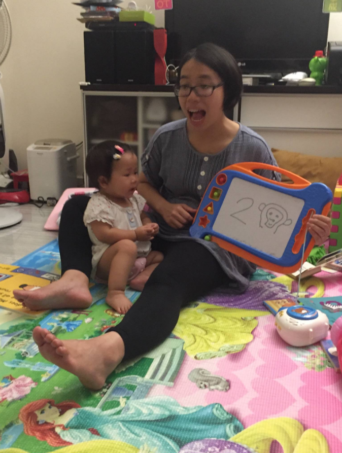 正因為識得講1-10,我哋就諗,既然識「2」又識得「媽」,咁應該可以講到「姨媽」啦,即然識「2」又識得「象」,咁應該可以講到「姨丈」啦,所以最近進行教導中﹗哈哈,總算俾我哋騙到講過一次「姨媽媽」㗎~不過後尾又唔肯講了,曉曉,加油呀,姨媽好期待㗎~