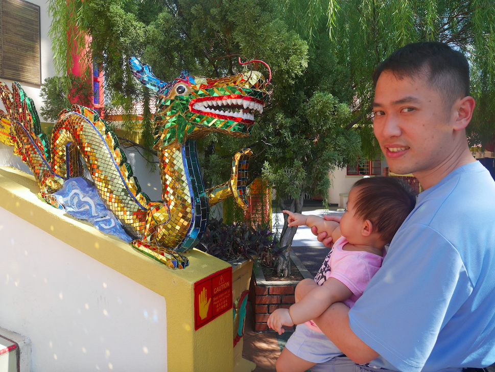 曉,你有咩想同條龍講?九個月大嘅曉對住條金龍手指指,打blog今日十四個月嘅曉應該會攬住我隻腳,震晒音咁講「媽媽」,再拍心口講「驚驚」~