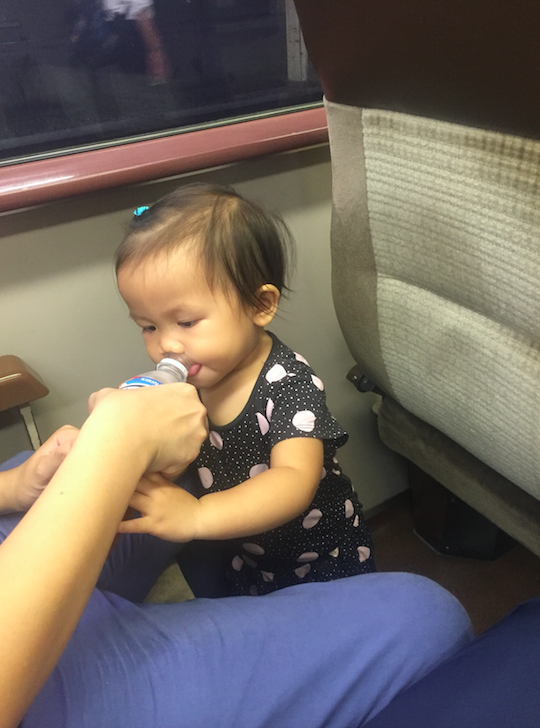 係火車上仲好活躍嘅小朋友,搶住飲凍嘢~