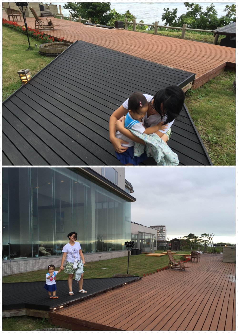 為咗要出去行下等曉曉晚飯之前瞓一覺,我哋輕裝咁落去酒店附近行下,趁佢未瞓時出去望海嘅平台度影下相啦﹗