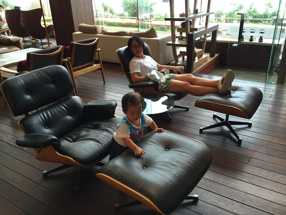 好啦好啦,入番室內,強制瞓覺先,爸爸抱曉曉去行下,我就去番lobby坐下睇下雜誌,冇㗎,得日文書同埋雜誌咋,我揀咗本類似講生活品味嘅雜誌嚟睇,好多相片,適合作為「文盲」嘅我,雖然講有錢人嘅生活品味,但感覺好優雅,內容唔講珠寶唔講名錶唔講名車,但就講下旅行講下美食講下生活嘅detail,印象最深刻嘅係一個lace特集,少少lace花邊就可以點綴生活同埋衣著~另外一個好深刻嘅係類似「陸上郵輪之旅」嘅旅行團介紹,點解郵輪可以陸上呢?其實係一個豪華火車九州七天旅行團,有幾晚住係火車入面嘅豪華獨立房,就好似坐郵輪嘅船艙咁有床有私家浴室,係火車入面享用美食,然後會「上岸」,係某啲景點會落車一日遊之類,然後好似其中兩晚會入住九州嘅溫泉旅館,唔同價位嘅溫泉旅館的話整個tour就有少少價錢嘅分別﹗好似好吸引咁呢~日本仔真係好多諗頭丫﹗我睇緊雜誌時,day就抱住瞓著咗嘅曉入番嚟,我哋終於悠閒地坐下啦~