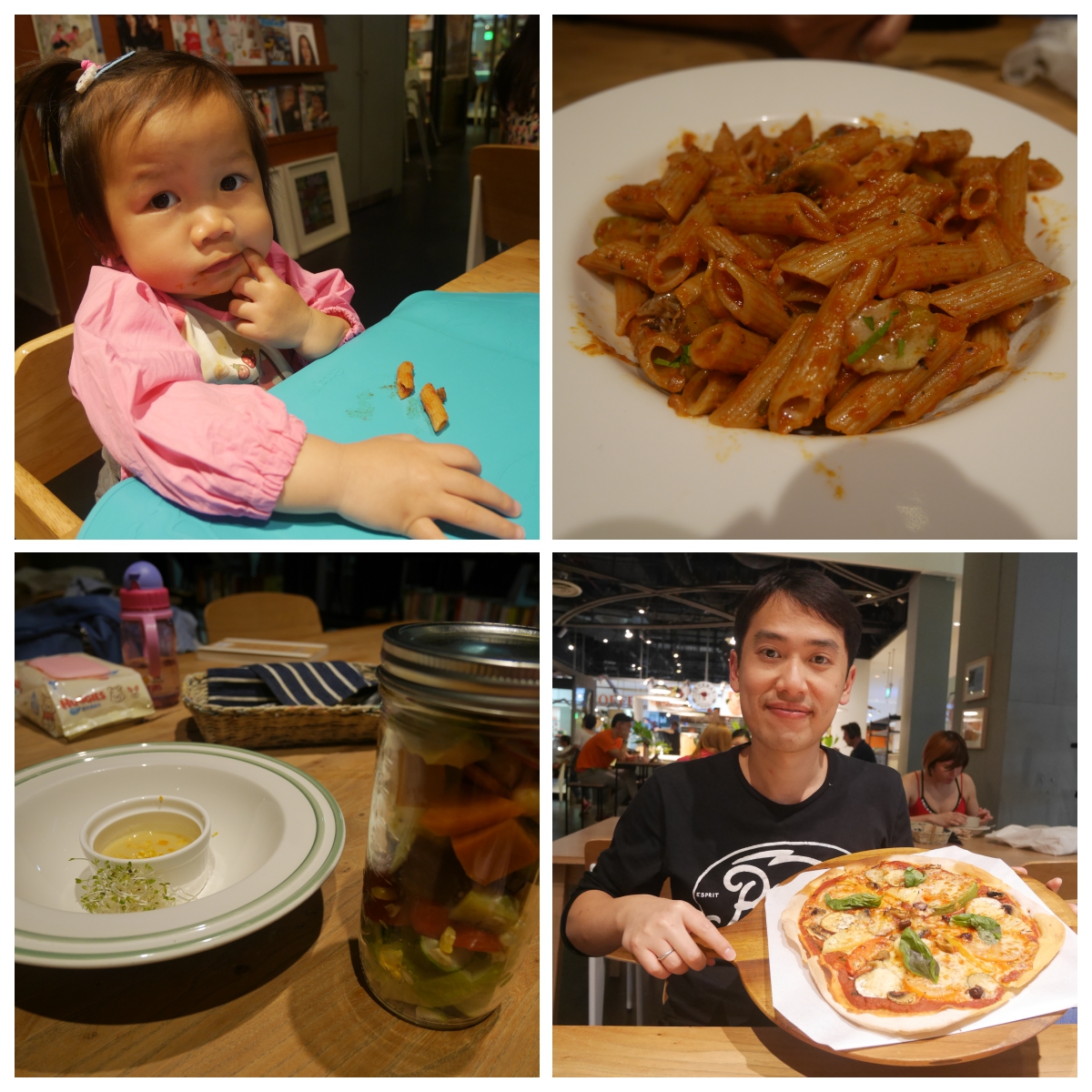 我哋叫咗蕃茄蘑菇長通粉,pizza,最重要係今晚亮點,好清新嘅沙律--