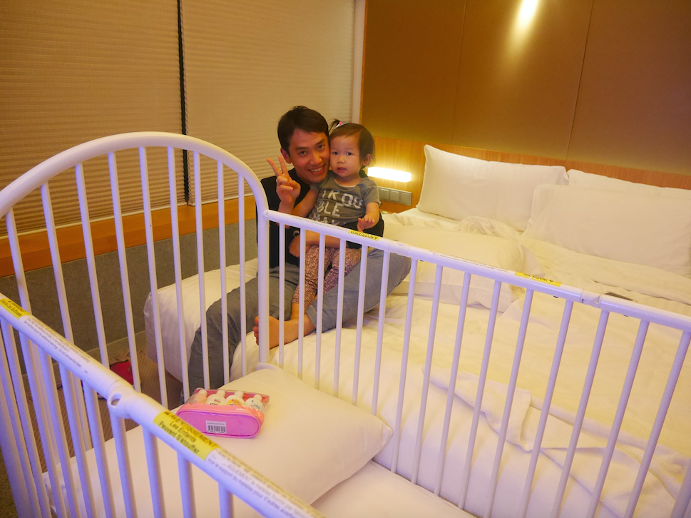 我哋雖然要求咗bb床,但似乎張床太細了,就同屋企曉已經唔再瞓嗰張bb床一樣size,所以我哋都冇attempt放佢入去瞓覺,直接三個人一齊瞓大床算數了~