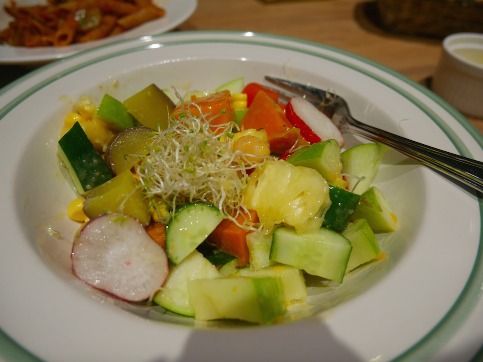 由地鐵站返酒店時經過個小型美食廣場,見到呢間Real Food,睇睇餐牌,有沙律有pasta有pizza,坐得都幾舒服,應該都ok,就試下啦~仔細睇餐牌先發現原來係素食餐廳呢﹗