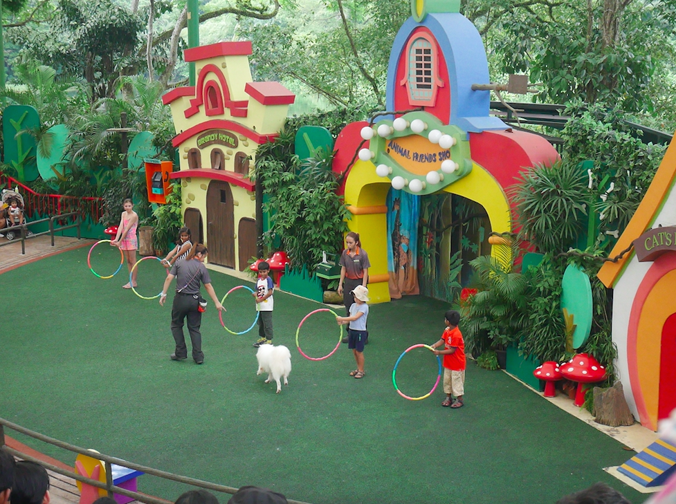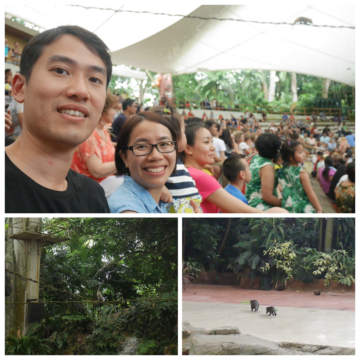 有趣嘅係,啲動物會由唔同位置出現,有啲會有舞台嘅一端奔跑去另一端一閃而過,有啲就會由頭頂嘅麻繩catwalk咁出嚟,曉曉睇動物都睇得好開心呀,雖然唔識聽英文,但一直都好專心留意住動物出場,而家問番佢去新加坡有咩睇,佢都會答「睇馬騮﹗」~