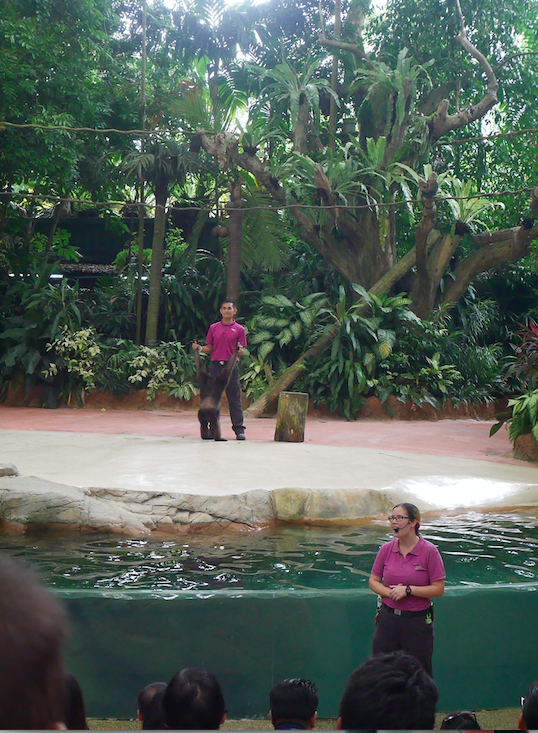 去到時下晝兩點幾,距離公園關門只有四個鐘,我哋決定全力玩Singapore Zoo了,唔好咁多心想去兩個park,入到去發覺果然係正確嘅選擇,因為入面好多嘢睇好多嘢玩丫,玩一日都唔嫌多,不過買門票時我哋加多S$5買埋tram ride門票,呢個就真係徙咗錢了,因為我哋入到去完全徒步,一次都冇搭過,因為又要係指定地方等,行車又只有單方向,想free啲都係行路算數~而家上網睇一睇,原來事先上網買定飛平好多﹗平日有九折,peak有九五斤,係super peak先至買番原價~所以如果一早計劃好行程,一定要提早上網買飛,又可以節省排隊嘅時間呢~