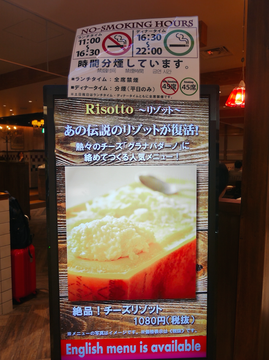 以前香港未全面實施食肆禁煙前,曾經有一段時間係大型食肆要劃三分之二嘅座位係非吸煙區,估唔到日本呢度有「吸煙時段」同埋「非吸煙時段」,可惜晚市嘅繁忙時段係吸煙時段呢,咁一家大細嚟食飯咪好唔方便囉~
