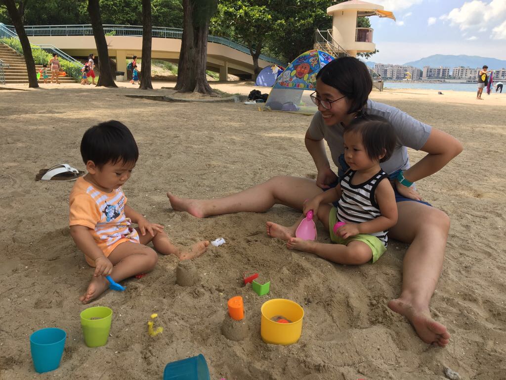 平日嘅早上,未夠十點,居然都有唔少一家大細嚟沙灘玩,我本來prefer黃昏先嚟㗎,不過啲小朋友嘅瞓覺時間實在太難預,佢哋普遍都係朝早醒晨啲,所以最後都係早上一齊玩~