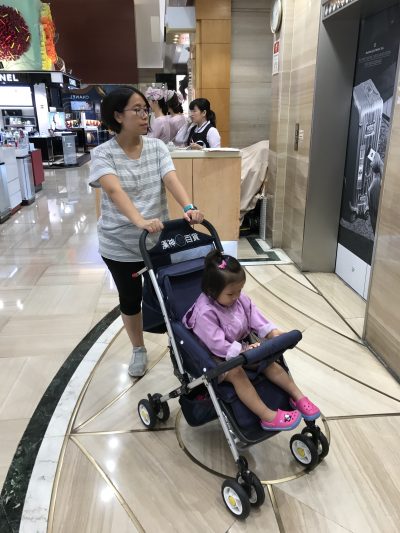 同day商量之後嘅行程,day 2去夢時代時知道大商場有得免費借bb車,不如我哋俾曉坐bb車休息,我哋逛下百貨公司啦~