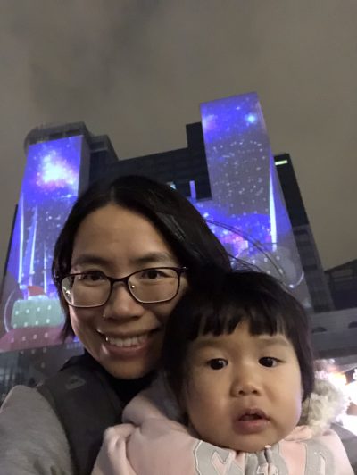 板橋站既靚靚燈箱廣告,開頭曉曉唔肯去影相,但放詩詩落地後,曉就有番啲動力了~