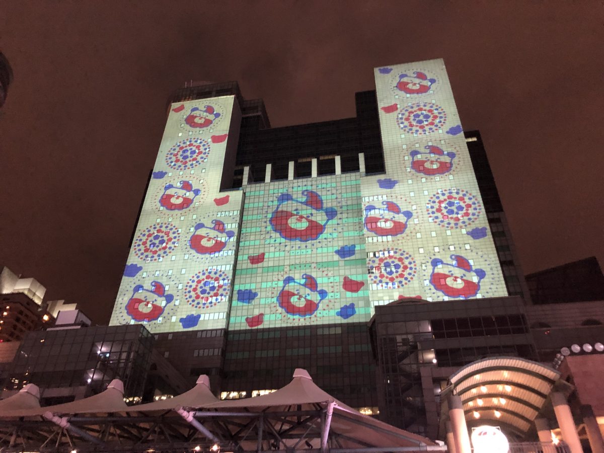之後搵到最主要活動既站前廣場,最震憾既係利用整幢大廈外牆做既螢幕,播放短片,睇到兩個小朋友入晒迷~