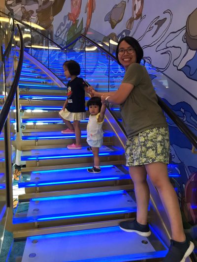 食飽飽之後,「大人們」決定要係郵輪上周圍逛逛,我哋同埋兩個小朋友決定早少少返房沖涼瞓覺,因為其實食完晚飯已經一啲都唔早啦~