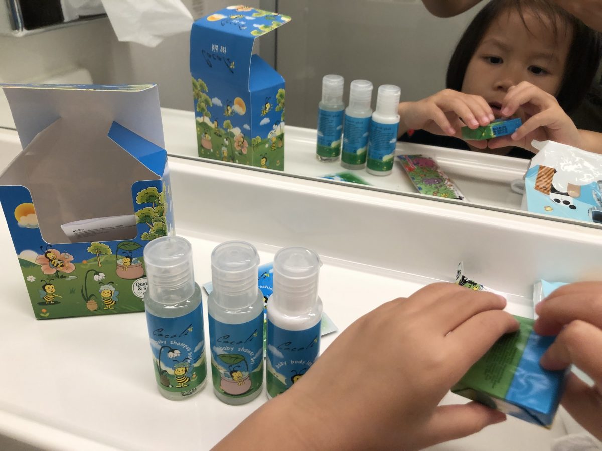 我哋返到艙房,三母女一齊沖涼,曉好鍾意呢套兒童用品~