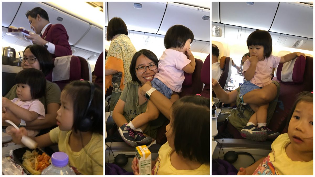 搭飛機都算如我想像既差不多,都算順利既,最唔想出現既場面係爆喊、勁嘈搞到周圍既人都唔滿意,結果全程詩都冇大叫,不過嘟嚟嘟去要捉住~通常帶住幼兒搭飛機,航空公司都會安排你坐第一行,需要既話可以掛個搖籃係前面,又可以有多啲空間,但其實打blog呢一刻先記起,上次曉21m去新加坡嗰次已經中過伏,因為第一排冇得放手提行李係前面張櫈既櫈底,一定要放上去overhead locker,嗰次曉由停機坪到起飛到解除安全帶標前一直不停叫「飲水水」,但無奈唔夠醒目,冇拎定樽水出嚟,嗰次求其用件衫遮住然後俾佢埋身食奶頂住檔先,但一離口又即刻叫「飲水水」,搞到好論盡~今次又編排咗坐第一行,記得拎定支水,又有拎定幾本書,但都好似唔係好夠用咁,要keep住詩安安定定咁坐係大脾半個鐘都真係唔容易~詩本來都冇自己既飛機餐,我同day嗰啲就食少少囉,淨係肯食甜品,總之唔嘈都算數~