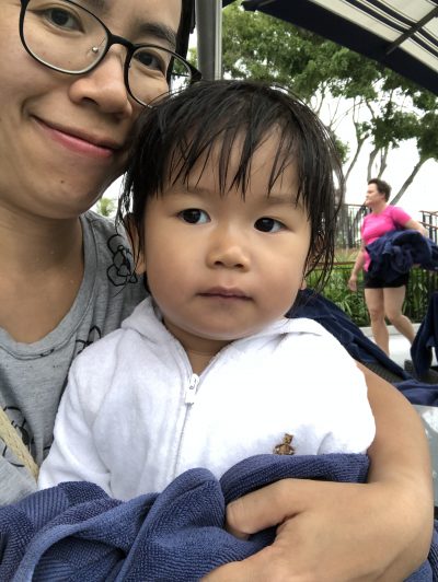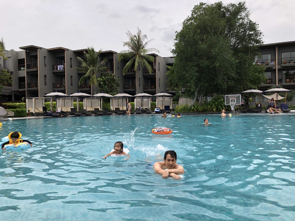 瞓醒晏覺,通常曉都要啲時間慢慢清醒,但如果有啲吸引佢既嘢就可以即刻彈起,要係佢耳邊講關鍵字,例如「去游水好唔好」之類~冇錯,我哋既下晝節目就係再享用多一次個酒店泳池~我哋又採取相同既路線,由family pool落水,捐過橋底個窿去teen pool sir下滑水梯,跟住去loop pool游一圈,再返kid’s pool玩玩水~但我同詩詩游水好快就要腰斬了,因為詩詩玩得一啲都唔暢快,係咁要黏住我,一落地就喊,後來我估因為落過雨,有啲凍,所以佢先喊喊~唔怕凍既曉就一啲事都冇,所以兵分兩路,我同詩返房沖身,day就同曉繼續游~