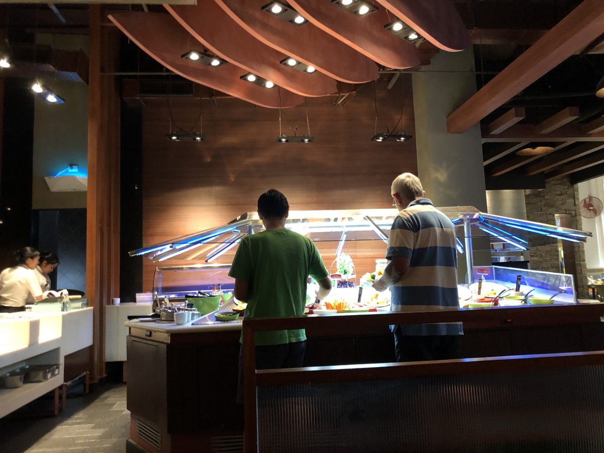 除咗有非常豐富選擇既沙律之外,有好多款湯、甜品同水果,實在太好了~當然自助餐冇酒店嗰啲咁精緻同豪華啦,但品質都好好,兩父女繼續食好多甘筍條﹗﹗我見day曉兩父女咁鍾意食甘筍,返到嚟香港都專登買咗俾佢哋食,day都話,泰國啲甘筍好味啲,無論係酒店定呢間半自助餐都係~可能泰國真係農業大國,好多嘢都係國內生產,樣樣夠晒新鮮,好多蔬菜水果都比香港嗰啲好味,我諗沙律菜特別明顯吧~平時係香港食自助餐或者去其他地方旅行食自助早餐,我都會夾少少沙律菜,極其量可能夾碟既四分之一左右,但今次嚟到泰國,我啲自助早餐夾既沙律菜,一日比一日多,因為真係好好味~而且內容好有心思,除咗一般既葉菜、蕃茄、青瓜、粟米等等常見食物之外,有見過薏米,又有見過藜麥,又有見過輕輕燙熟既西蘭花,醬汁亦好多變化,令沙律更吸引~