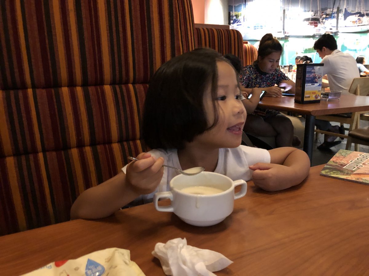 詩最近都自己飲湯飲得叻叻,不過泰國旅行期間有打爛碗既不良紀錄,要小心啲幫佢扶住個碗~
