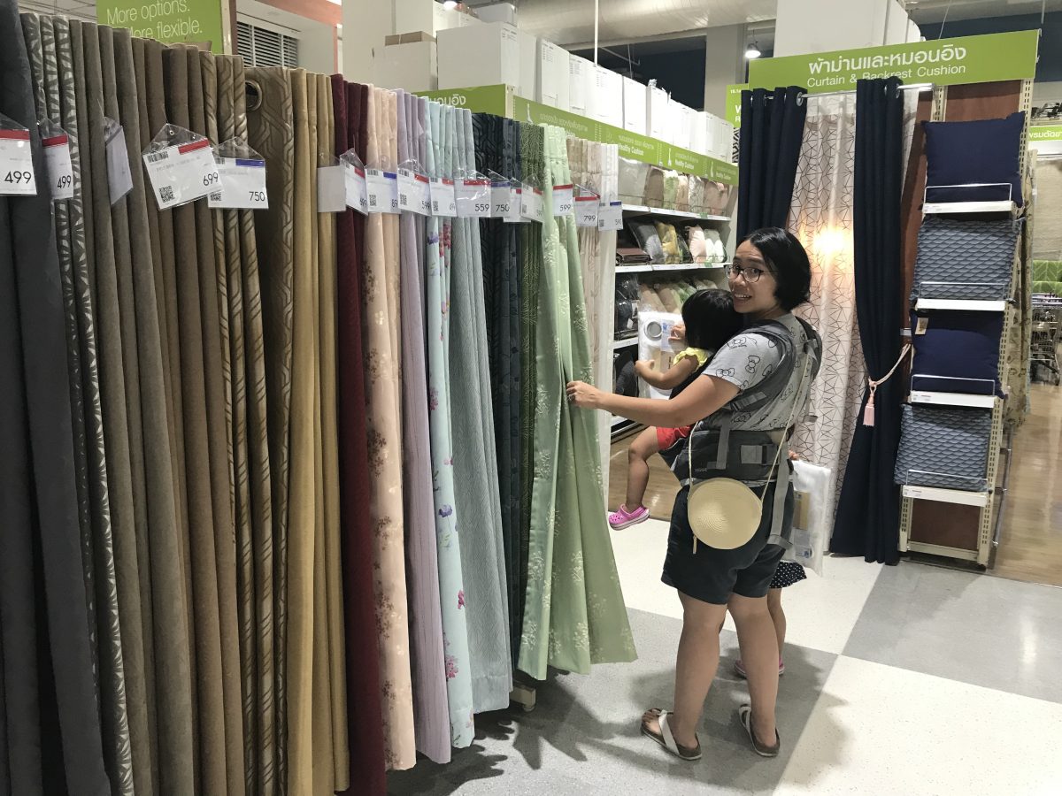 我哋食飽飽其實只係八點鐘左右,但餐廳已經得番零星幾枱客人,後來我哋行完街先知,原來商場好早關門,一到九點鐘就全部鋪頭落晒閘~我哋晚飯後逛逛街,我哋行咗家品店HomePro,好大間好大間既鋪頭,大小電器、衛浴設備、傢俬、小家品等一應俱全,估唔既係我哋居然都有收獲,買咗兩對窗簾,之前買窗簾都係去IKEA,比起訂造窗簾平,但全部都係落地長度,要拎出去俾人改,又要花錢又麻煩,今次係HomePro見到有短身窗簾啱啱好,款式又靚,返到嚟掛起咗好好睇呀~綠色遮光窗簾睡房用,希望大家午睡瞓得好啲,白色半透明窗簾就客廳用,明亮啲~