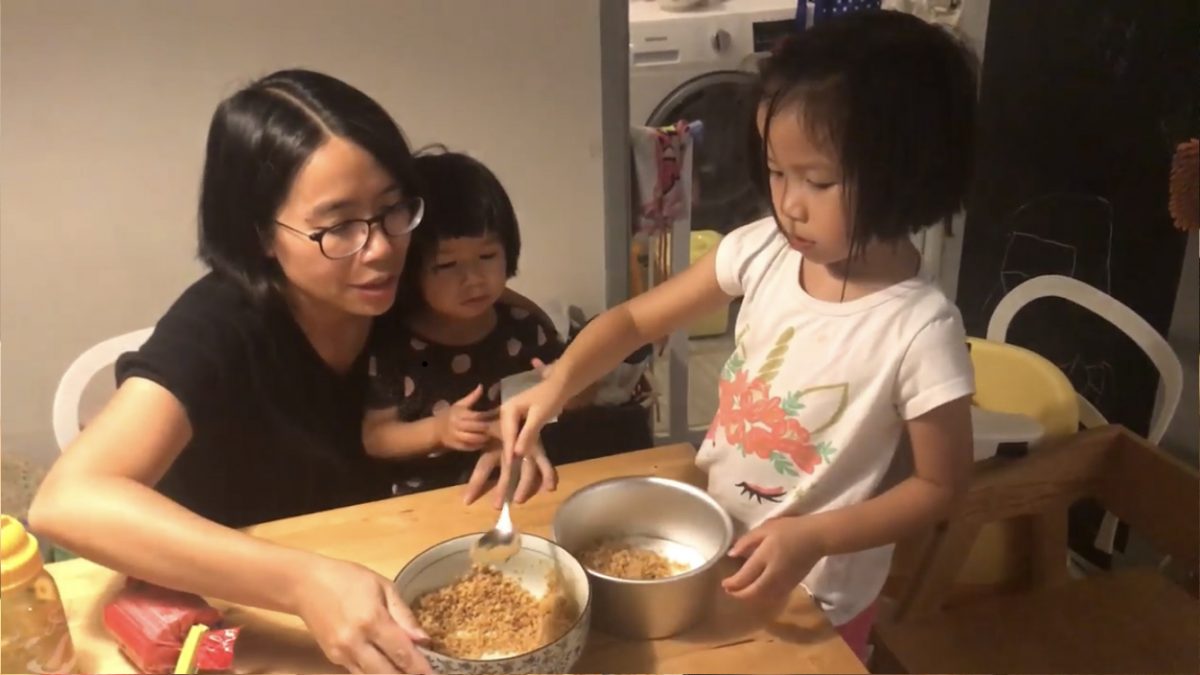我見個蛋糕容易整,打算安排適合既steps俾曉曉幫我手,但估唔到既係,詩詩都好想幫手囉﹗﹗﹗詩話:「我要攪呀~我要攪呀~」兩姐妹仲要爭住幫,搞到我一頭煙~哈哈~要係廚房加熱既部份我就禁止佢哋入嚟,但我一拎任何嘢出嚟佢哋就擁過嚟啦~
