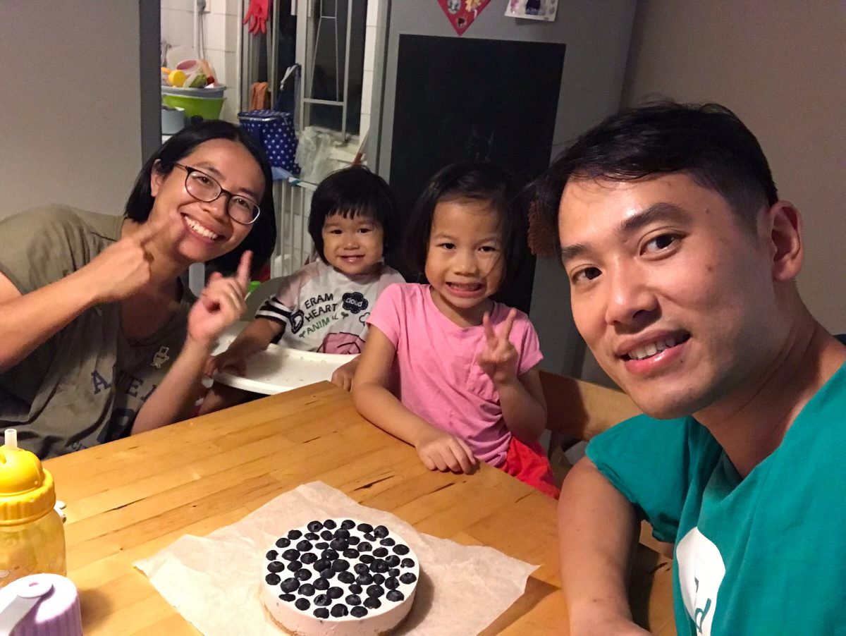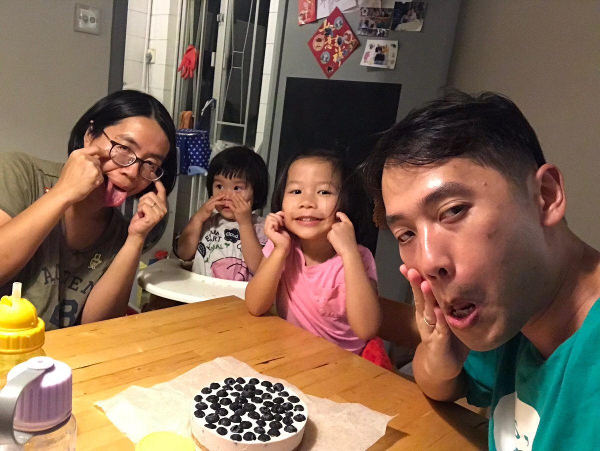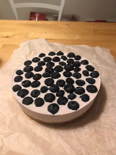 上次母親節day同曉曉合力整咗個朱古力慕絲蛋糕送俾我,今次day生日,我同曉曉點樣同爸爸慶祝時,提到整個生日蛋糕俾佢,問day想要咩蛋糕,因為佢近年不停發福,好多批褲都陸續唔啱著,所以佢既要求係—-唔肥既蛋糕~上網搵下「低脂、低卡」蛋糕食譜,就search到今次整既乳酪蛋糕喇﹗食譜本身係芒果乳酪蛋糕,但靚既芒果可遇不可求,好多時仲要買返嚟放幾日先熟(買既時候唔知究竟係放三日五日定七日囉,可能道行未夠深),我睇,轉藍莓或者士多啤梨應該都ok~呢排啲藍莓又大粒又甜,就藍莓啦﹗結果變成藍莓乳酪芝士蛋糕,day話,點解變成曉曉鍾意既蛋糕既?umum…我真係諗住整俾你食架,唔知點解會發展成咁…