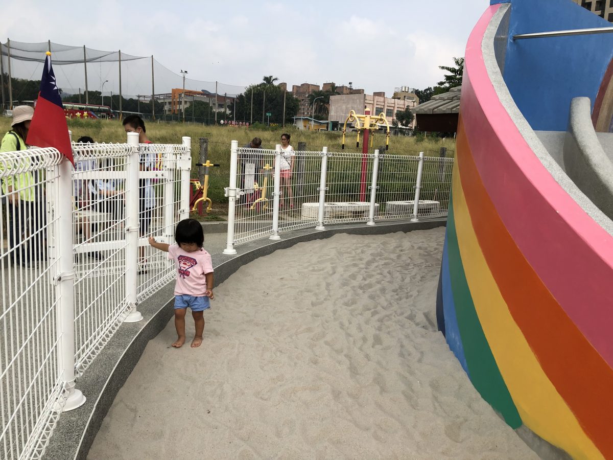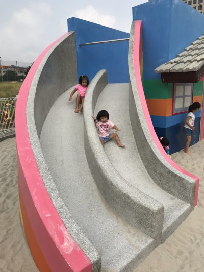 圍住滑梯係沙池,要除鞋入去,詩開頭係拮腳既沙上面行行得好慢,後尾習慣咗就自由活動啦~