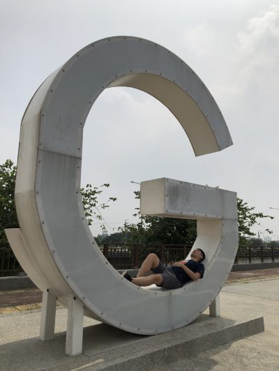 話說去彩虹村時既Uber司機比較多嘢講,佢知道我哋係香港人,又傾下香港既情況,另外又問下我哋仲打算去邊度玩,我以為佢想兜生意邀請我哋包車,但原來佢真心想推介值得去既地方~我話佢聽,去完彩虹眷村,我打算去「附近河邊可以影相既地方」,佢完全唔知我講邊度,話呢度附近冇河…^^”其實嗰個地方叫做「筏子溪門戶迎賓水岸廊道」,個名咁長我講唔番出嚟,總之嗰度有好隻台中既英文字,啲人係嗰度影相得好靚咁啦~我知道唔算係咩特別既景色,但而家流行嘛,最重要係好近彩虹村,一場嚟到順便去埋啦~