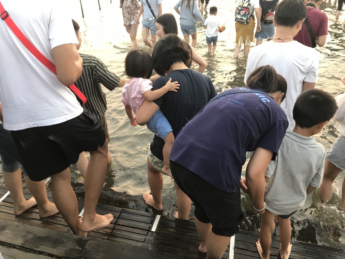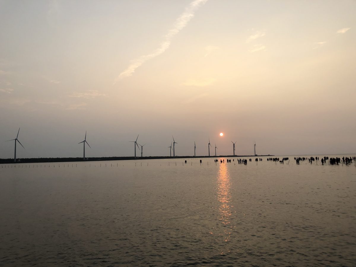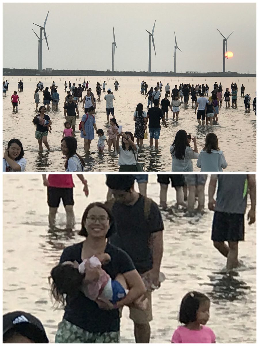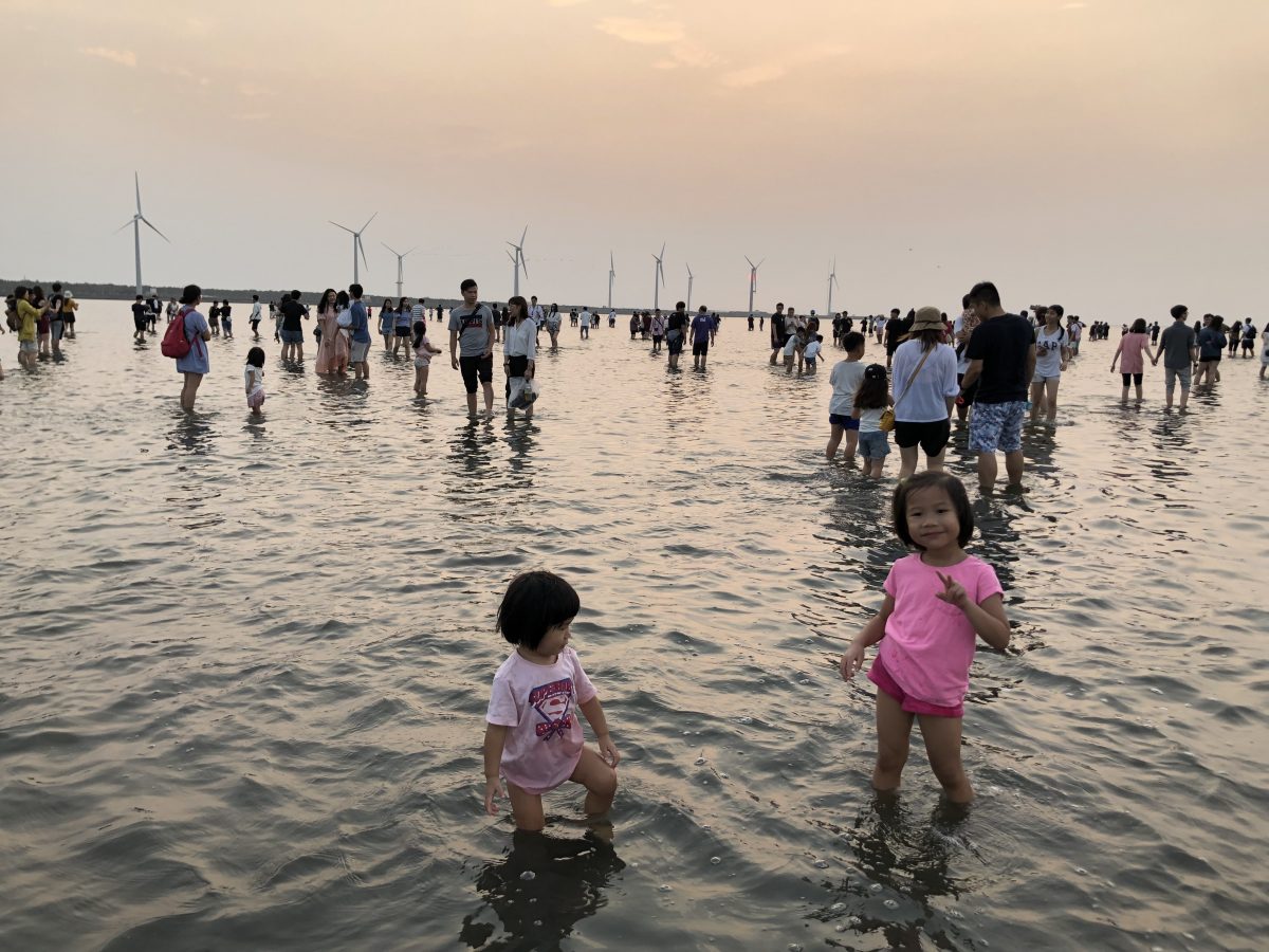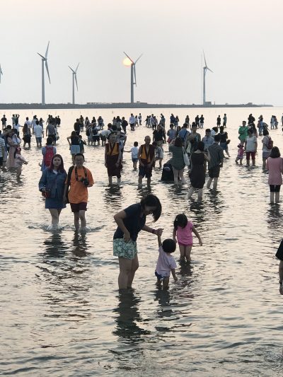 我哋沿住木棧道一直向前行,其實今嚟台中,去好多地方都覺得好少人,同台北同高雄好大分別,但高美濕地既木棧道似乎係今個trip入面人口最密集既地方,可能只有逢甲夜市可以相比,木棧道左右冇圍欄,人又多,所以要慢慢前進~