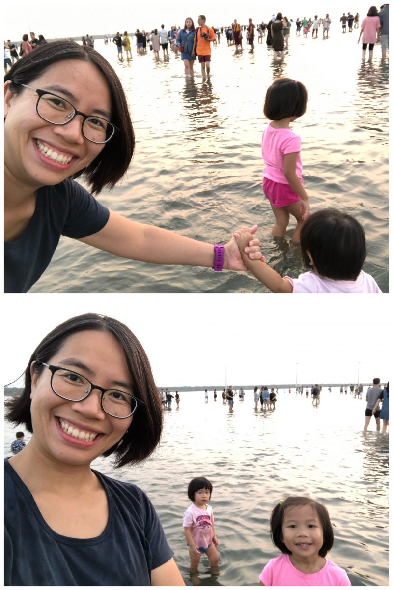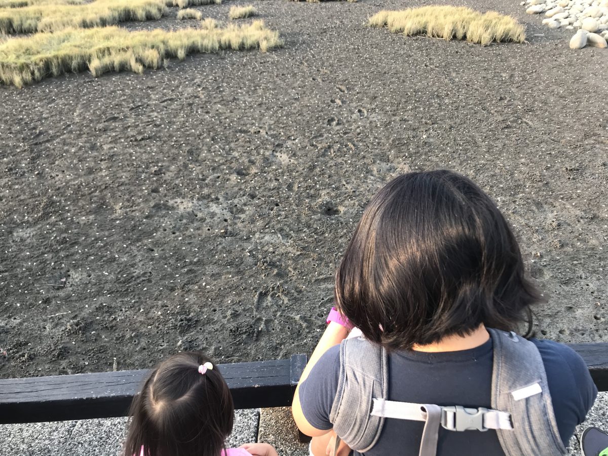 啲蟹真係多得好—-交—-關—-﹗﹗﹗如果要劃1mx1m既方格有幾十隻蟹既話,成個高美濕地真係唔知有幾多萬隻﹗﹗而且佢哋好活潑,行嚟行去,曉就記起Peppa入面有一集講豬爺爺同豬嫲嫲帶Peppa同George去海邊,佢哋兩姊弟扮蟹打橫行,曉又學Peppa扮蟹打橫行~我哋睇下睇下時,詩就瞓醒覺啦,太好啦~