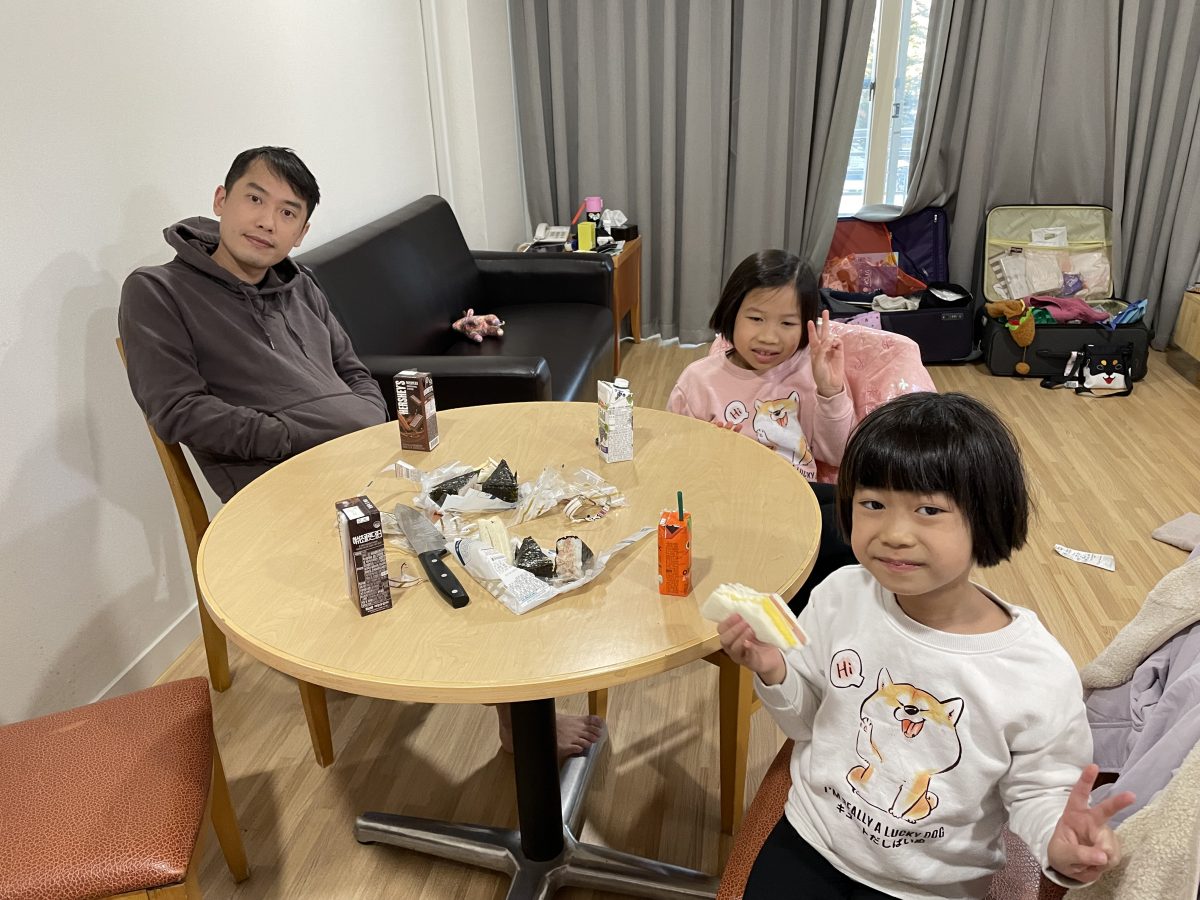 爸爸食早餐時有少少不在狀態,到喺外面返入嚟就感覺更明顯,原來輪到佢有啲病病豬…安頓三父女返房,幫小朋友換走啲俾雪整濕咗嘅褲,爸爸就瞓下休息下,我哋三個就再出去便利店買午餐~