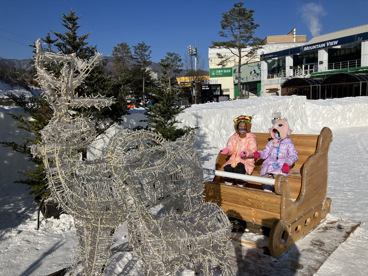 有個小小雪滑梯,佢哋係度玩咗一陣,如果有個小雪橇一定更好玩~度假村有個Snow Village好似係專俾小小朋友玩雪橇,不過我哋冇入去玩呀,反而有諗過喺商店買個25000 won嘅雪橇自己玩,不過最後都係得個講字~