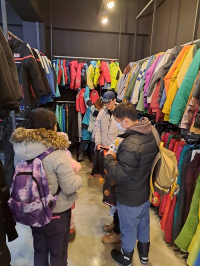 教練嗰邊嘅人嚟到pick up我哋,其實我哋開頭都唔太明白點解要上車,因為滑雪場入口就喺酒店楝旁邊嘅滑雪小屋之嘛~我哋照上咗車先,究竟駛去邊呢?坐咗一陣好快就落車,原來係一間滑雪用品店,我哋喺度先做好各種準備,會合教練,當然最重要係俾錢,先正式去滑雪~
