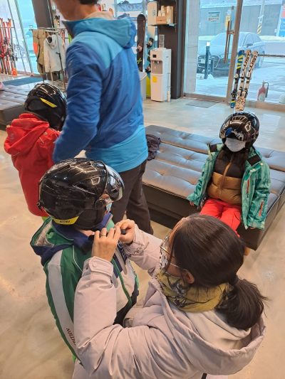 入到去滑雪用品店即刻一大棚職員招呼我哋,話幫小朋友換衫先喎~
