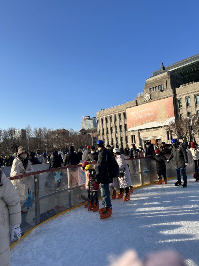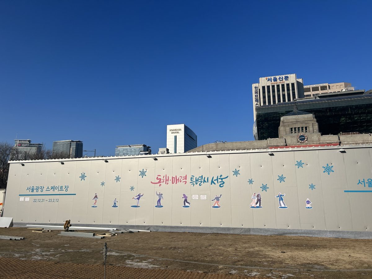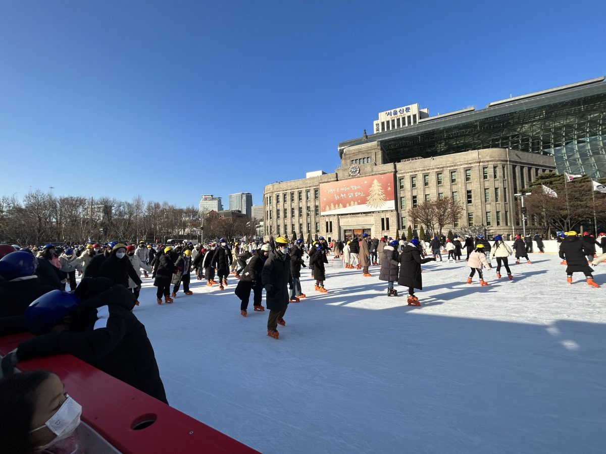 睇咗地圖,我哋過返去景福宮搭小巴,我哋下一站去首爾廣場溜冰,決定咗冬天去韓國,去市廳對出嘅臨時戶外溜冰場已經係我plan嘅must do item﹗其實好耐冇溜冰啦,但記得以前學韓文時教科書都有講過呢個冬季限定溜冰場,喺聖誕樹底、飄雪之中、星夜之下溜冰,感覺好浪漫呀~陣間睇到現實,就知道並唔係想像中咁~