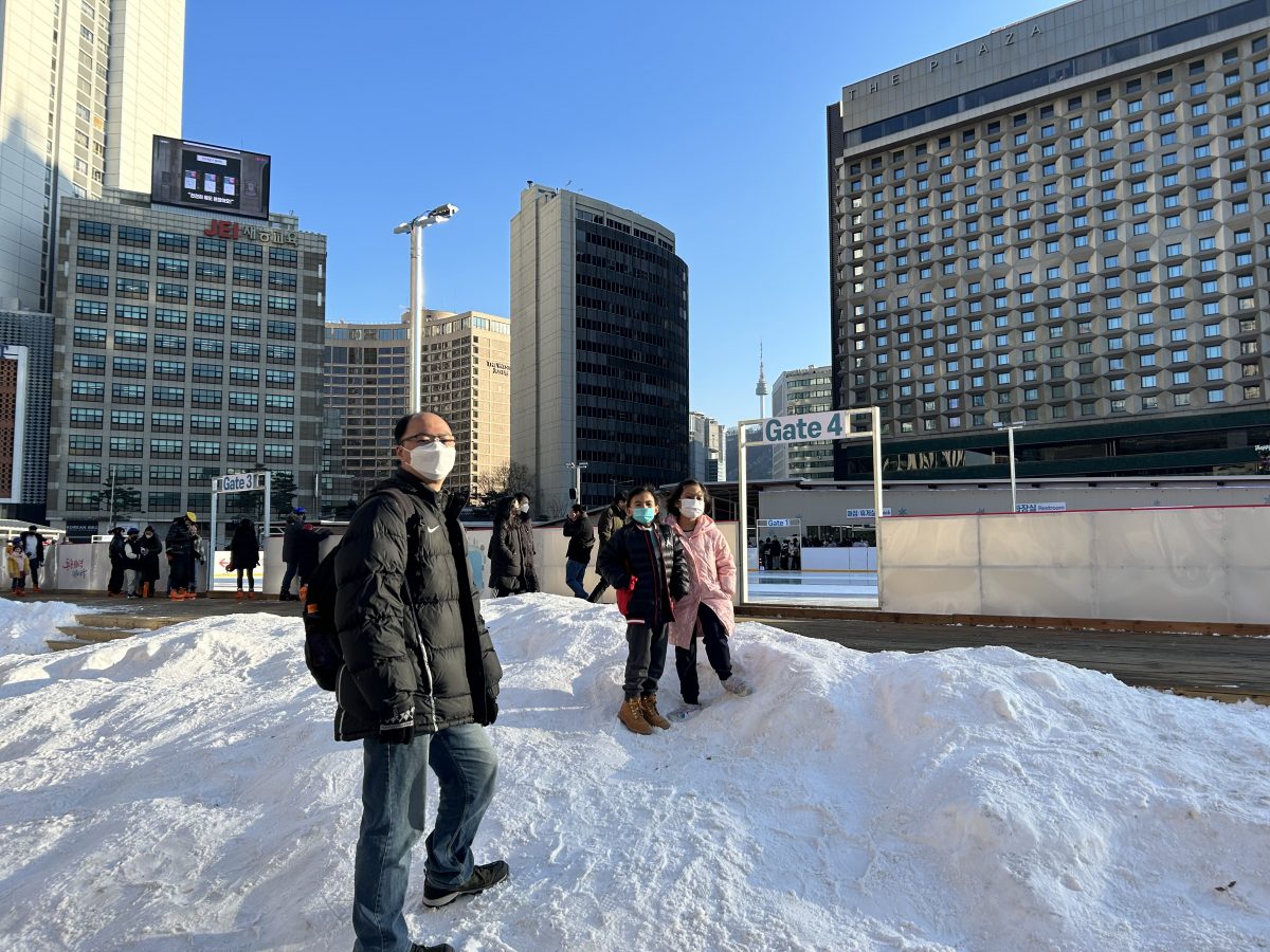 還好鞋,我哋準備去下一個活動啦~本來首爾呢段時間冇咁厚積雪,呢啲應該係溜冰場刮出嚟嘅碎碎堆成吧?