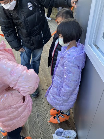 準備入場﹗哎吔,去到溜冰場搣飛嗰度,職員先至話一定要戴手套先入得場,我對手套就袋喺褸袋,但兩個小朋友唔係太鍾意戴手套,呢兩日又回暖咗好多,我哋根本冇攞手套出嚟,記住,我哋係已經每人有三對手套呀下(香港帶過去嘅淘寶oversize滑雪防水手套、東大門街邊買嘅冷手套、滑雪用品店買嘅滑雪防水手套)~冇手套入唔到去玩,曉曉嘅眼淚好快就流咗出嚟,慘,仲要逸逸一家已經順利入咗場添~既然強制要人戴手套,應該有小賣部之類會賣手套?身手靈活(冇著溜冰鞋)嘅爸爸即刻衝去搵,好快就帶來小朋友嘅第四對手套﹗係非常薄it it嘅毛線手套,質地有啲似勞工手套咁,點都好,1000 won一對,可以即刻入場,點都抵~