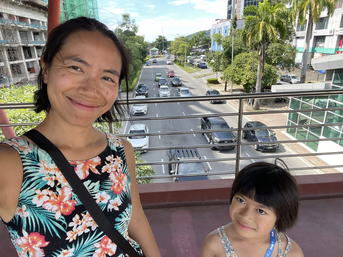 咁不如食個lunch,逛逛商場,差唔多時間先去沙灘啦~Google Map話,由酒店行過去附近比較大嘅Imago Shopping Mall只係27分鐘,ok丫,唔算好遠,順道逛逛亞庇市區啲街~點知行落就唔太對路了,後來問起啲本地人,原來本地人通常唔會點用雙腳去移動,一係自己駕車,一係call Grab,所以一方面行人路鋪得唔好,另一方面公共交通都非常唔發達~加上天氣勁熱勁曬,我就冇乜問題,但曉係非常唔耐熱嘅,9個月大第一次嚟馬來西亞時已經係咁,一出戶外就dur晒,一入室內就即刻生龍活虎,估唔到8年後都一模一樣~我哋唯有行到頂唔順就衝入去便利店涼一下冷氣,休息一陣再行過~我有提議過索性食經過嘅餐廳,比起冇冷氣嘅餐廳,佢哋寧願頂硬上行埋過去商場~