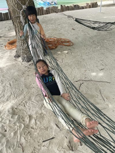 我哋見到有各種設施當然好興奮啦,小朋友們即刻跳上啲吊床度試下~