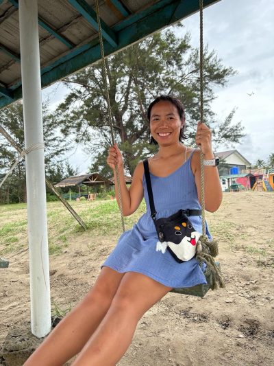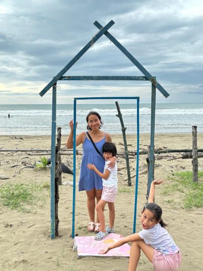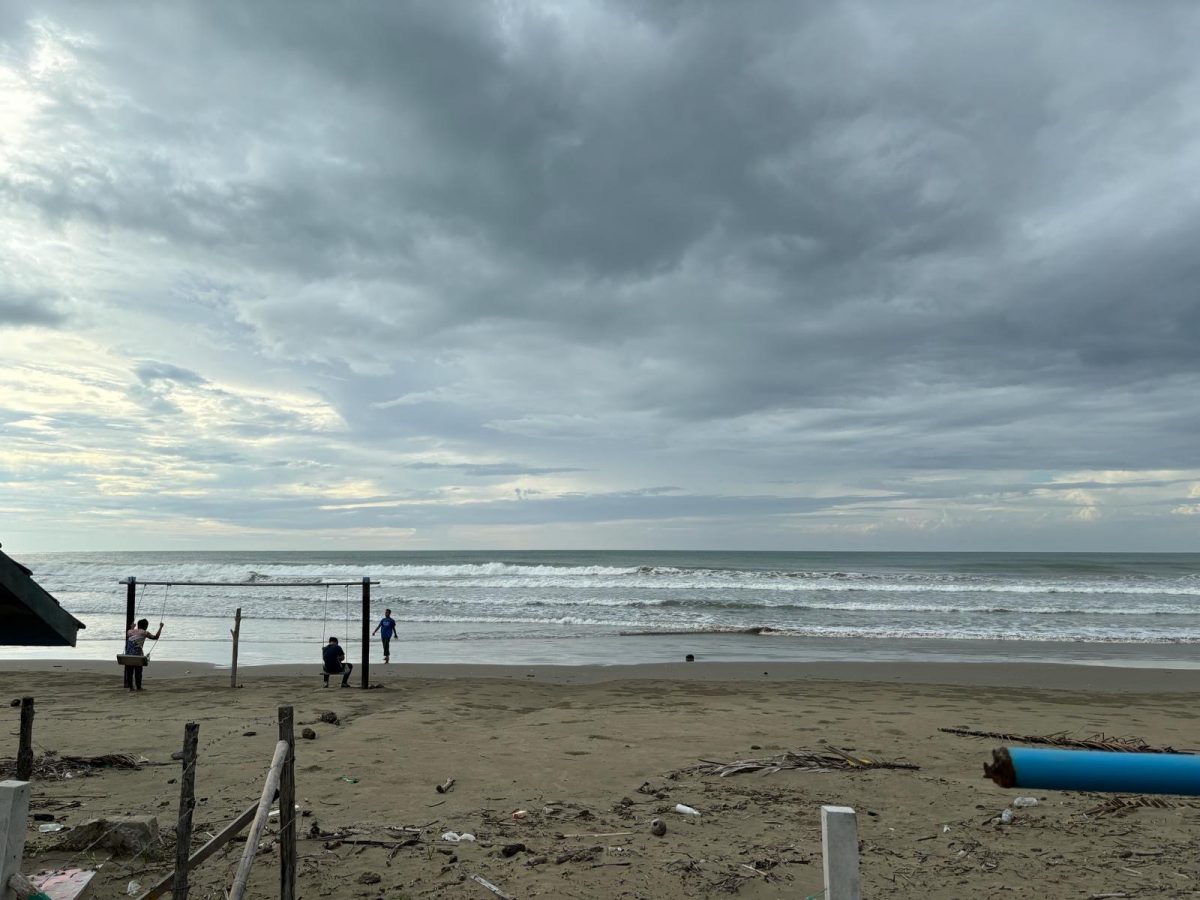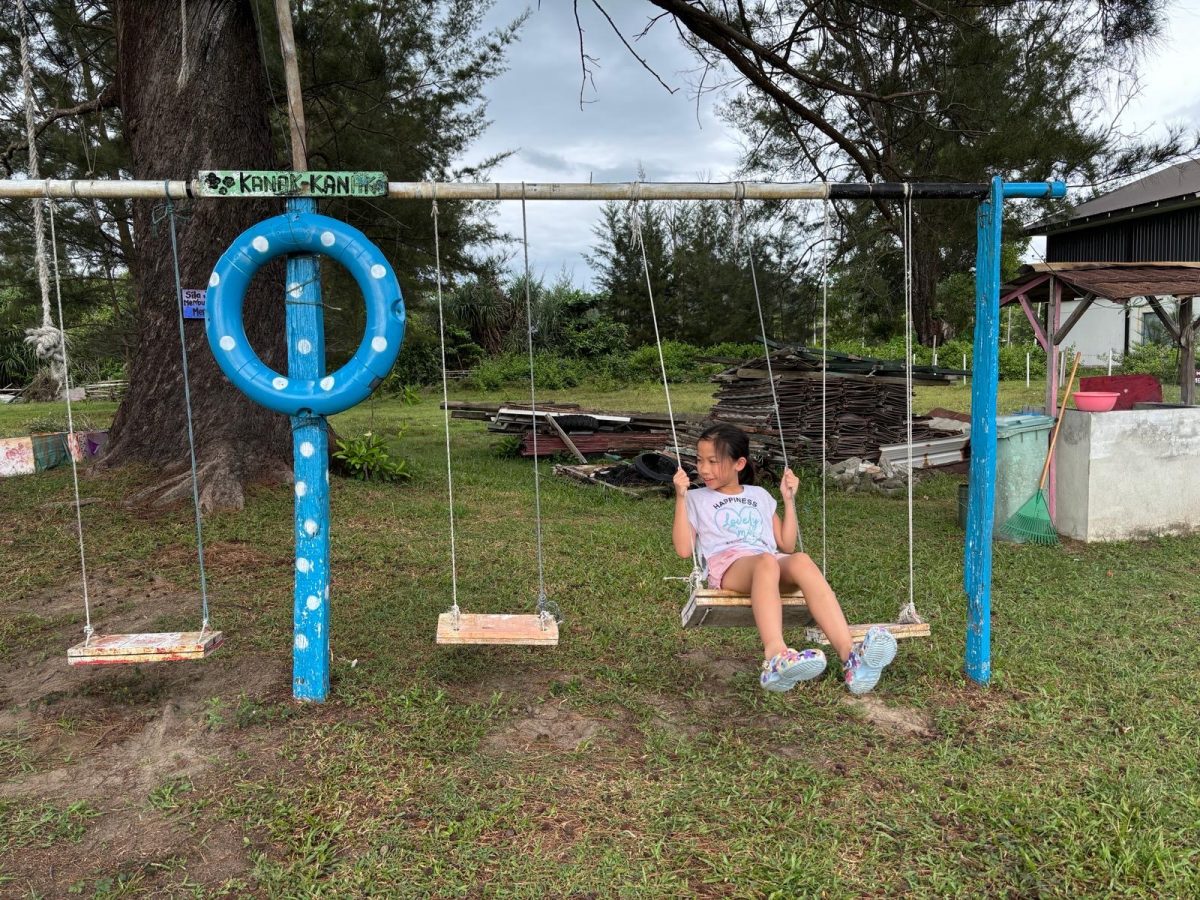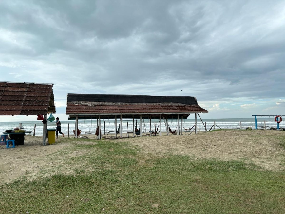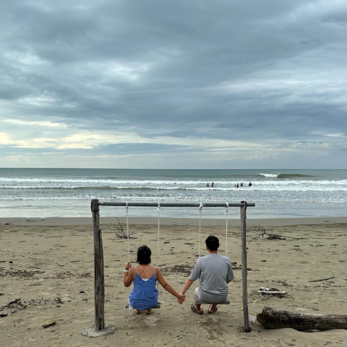 我哋嚟到一個海邊休息區,有個小小嘅半露天座位區,serve咖啡同埋少少小食,休息區仲有好多吊床同埋秋千,沙灘好大浪,似乎唔適合落水玩~
