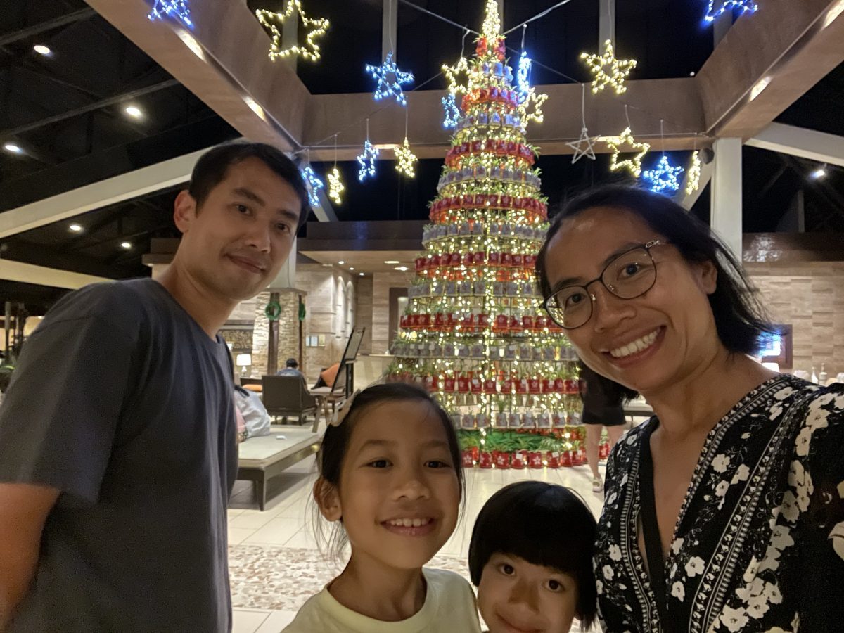 食飽飽我哋去逛逛附近嘅度假村設施~我哋去商店買咗啲postcard同郵票,又經過一個半戶外嘅遊樂區域,有得打乒乓波、捉棋嗰啲,我哋玩咗掉豆袋一陣~落一層係Garden Wing嘅lobby,嗰度有一棵仲大嘅聖誕樹呢?又係盆栽砌成嘅,今次我哋冇數盆栽了~
