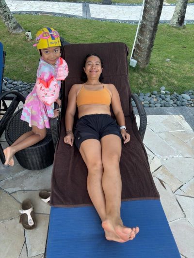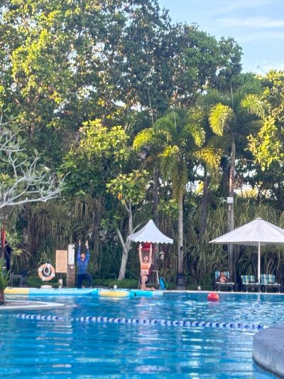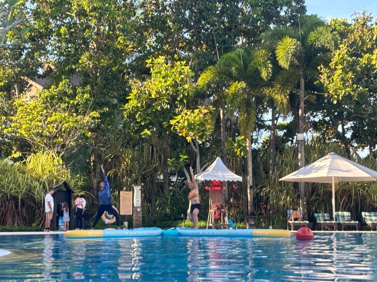 今次SUP瑜伽班係Ocean Wing嘅泳池進行,我早少少去報到,去到時早到泳池未有其他住客游水,有個女士主動過嚟同我講嘢,原來佢就係教練了,佢話今日嗰堂有兩個人報名,我哋等夠鐘就開始~