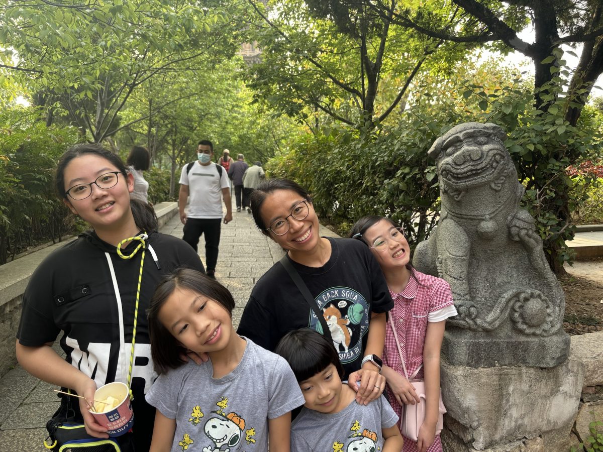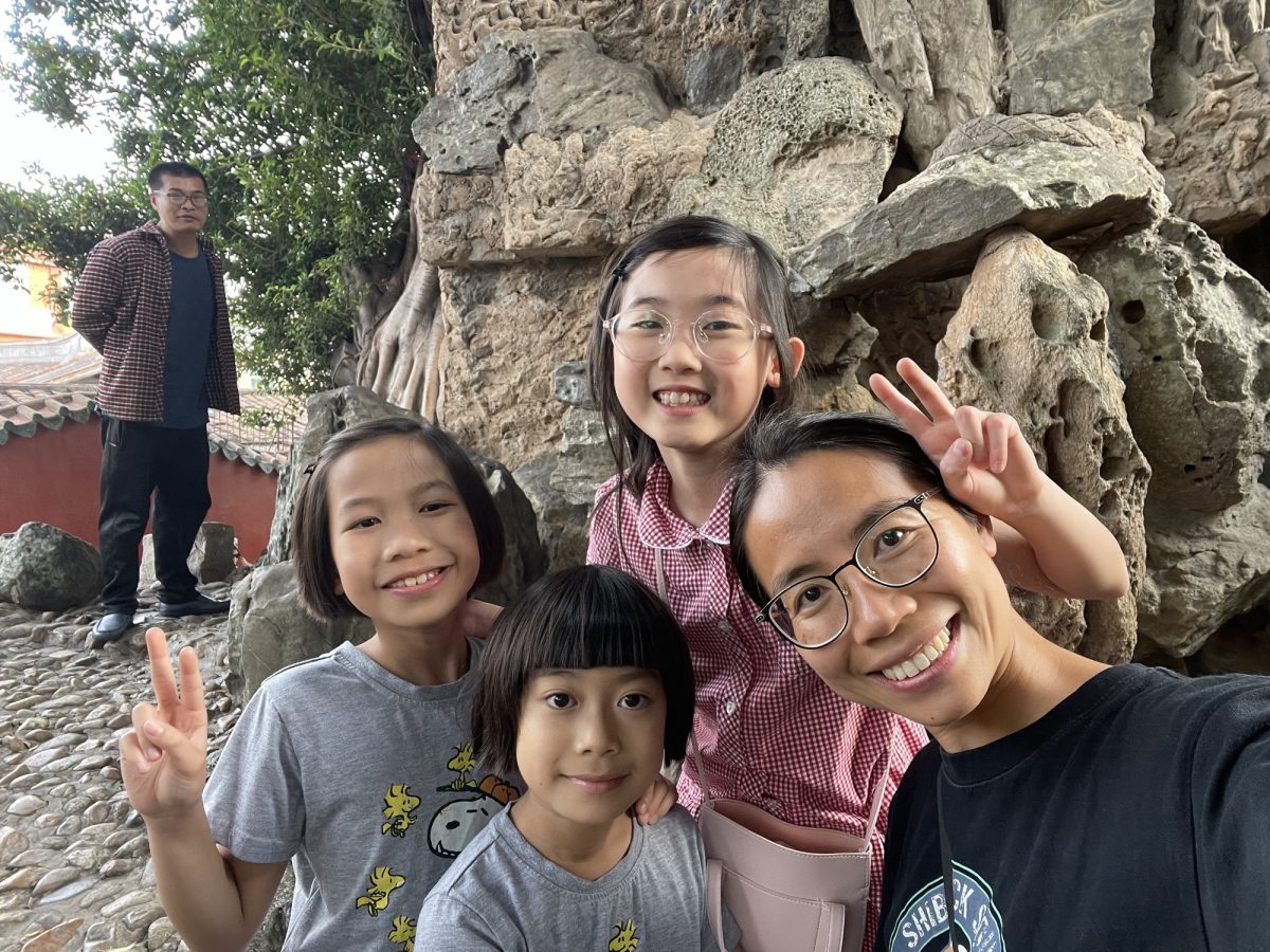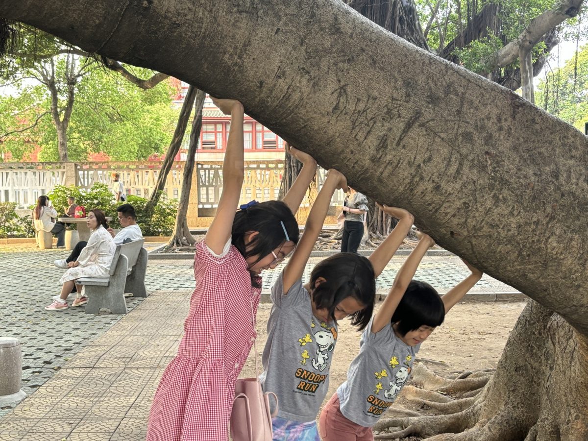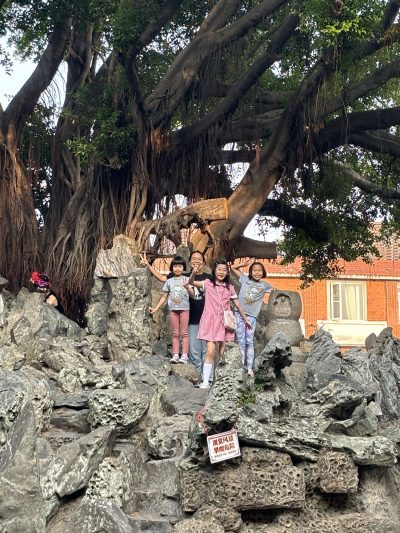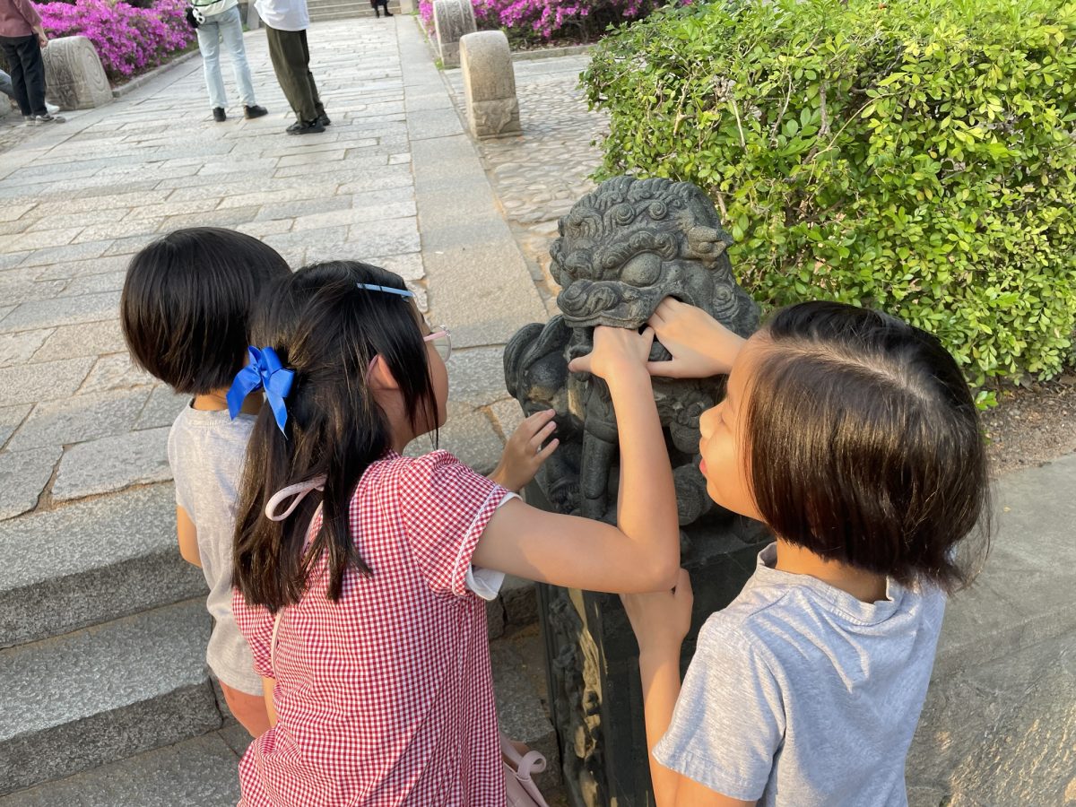開元寺裡面有個好大嘅花園,小朋友們就開心囉,張相入面你搵到邊個?