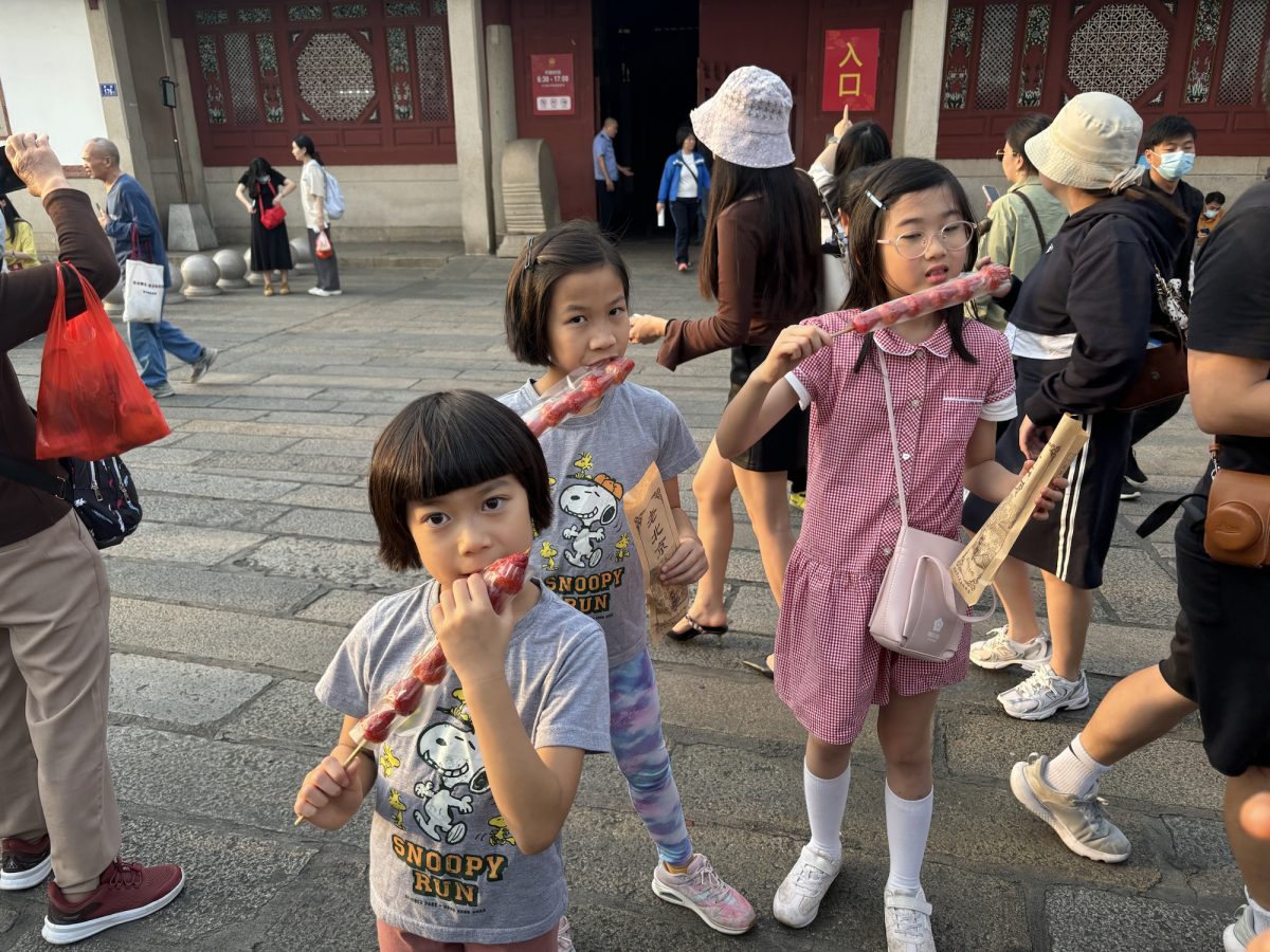 離開開元寺,表伯娘帶我哋逛西街,西街係步行街,充滿特色小食,如果認真逐樣試,真係可以直接食飽﹗我哋知道正餐一定有正嘢食,所以打算盡量保守,唔主動出擊~但我哋同表伯娘會合嘅嗰一剎那,佢已經買好幾支冰糖葫蘆請我哋食﹗