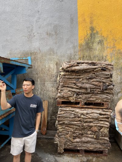 通告寫話參觀皮革廠,我自己想像係,有啲皮革嚟到廠房,然後生產啲手袋呀、皮鞋呀、皮帶呀、銀包呀之類嘅東東,所以先有我哋DIY咭片套嘅環節~去到有負責人同我哋講解,原來唔係咁樣一回事,嗰位負責人原來係皮廠家族嘅第三代傳人,佢嘅爺爺同外公早係七十年代已經經營皮廠生意,所謂皮廠,原來係屠宰咗食用牛隻之後,會將層皮毛運嚟皮廠,皮廠會用化工材料去加工層皮,去毛、去皮脂、防腐、去濕,變成一張張可以製作皮革產品嘅材料~所以去到皮廠其實都幾大陣味,因為本來就係處理動物身體嘅地方嘛~