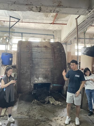 不過因為本地屠宰嘅牛隻越來越少,而家一年365日,除咗年初一、二、三屠房休息之外,每日都只屠宰30隻牛,所以原材料越來越少,工廠規模比起全盛時期已經縮細咗好多啦~佢介紹完加工牛皮嘅過程、機器之後,我哋就上樓上嘅DIY工作室做手工喇~