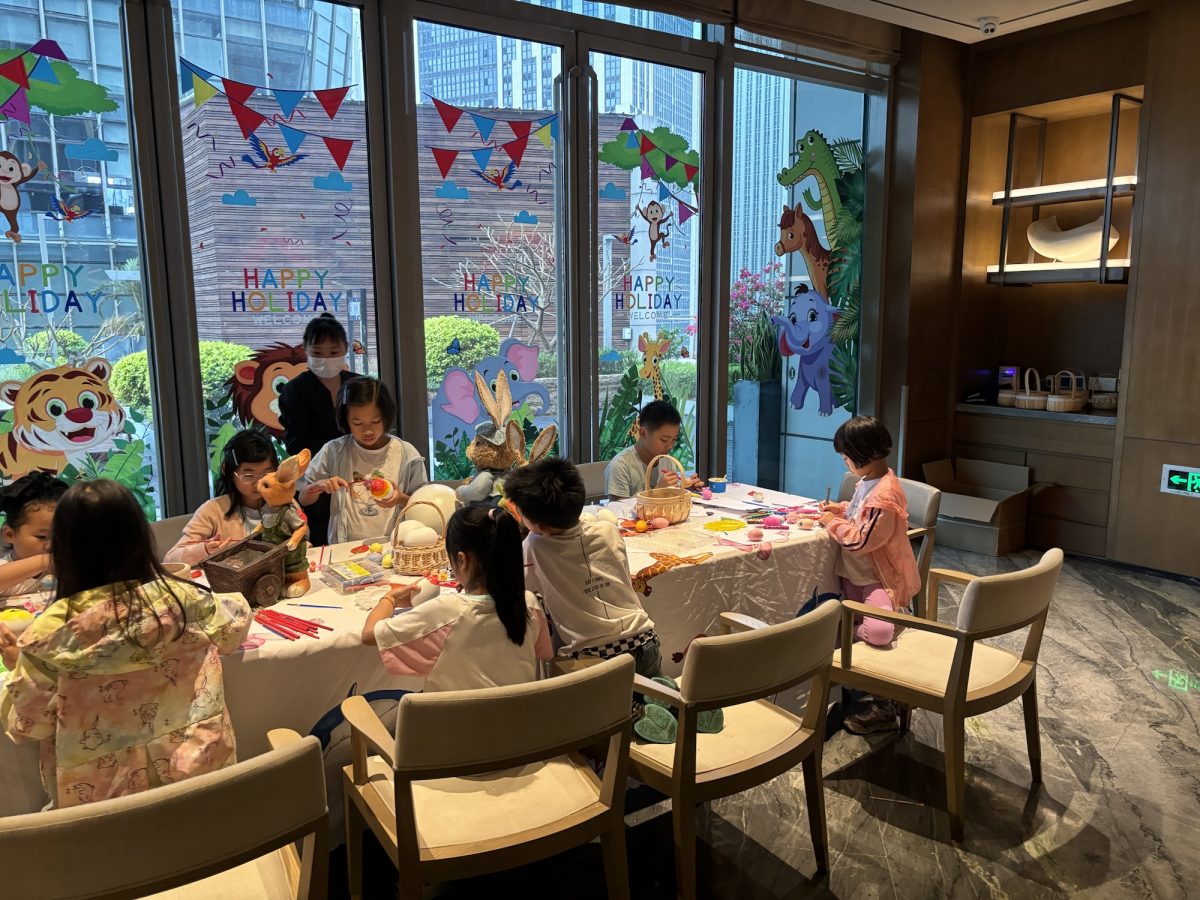 食到咁上下,有職員走嚟邀請小朋友去參加裝飾復活蛋活動,三個細啲都興緻勃勃要參加~