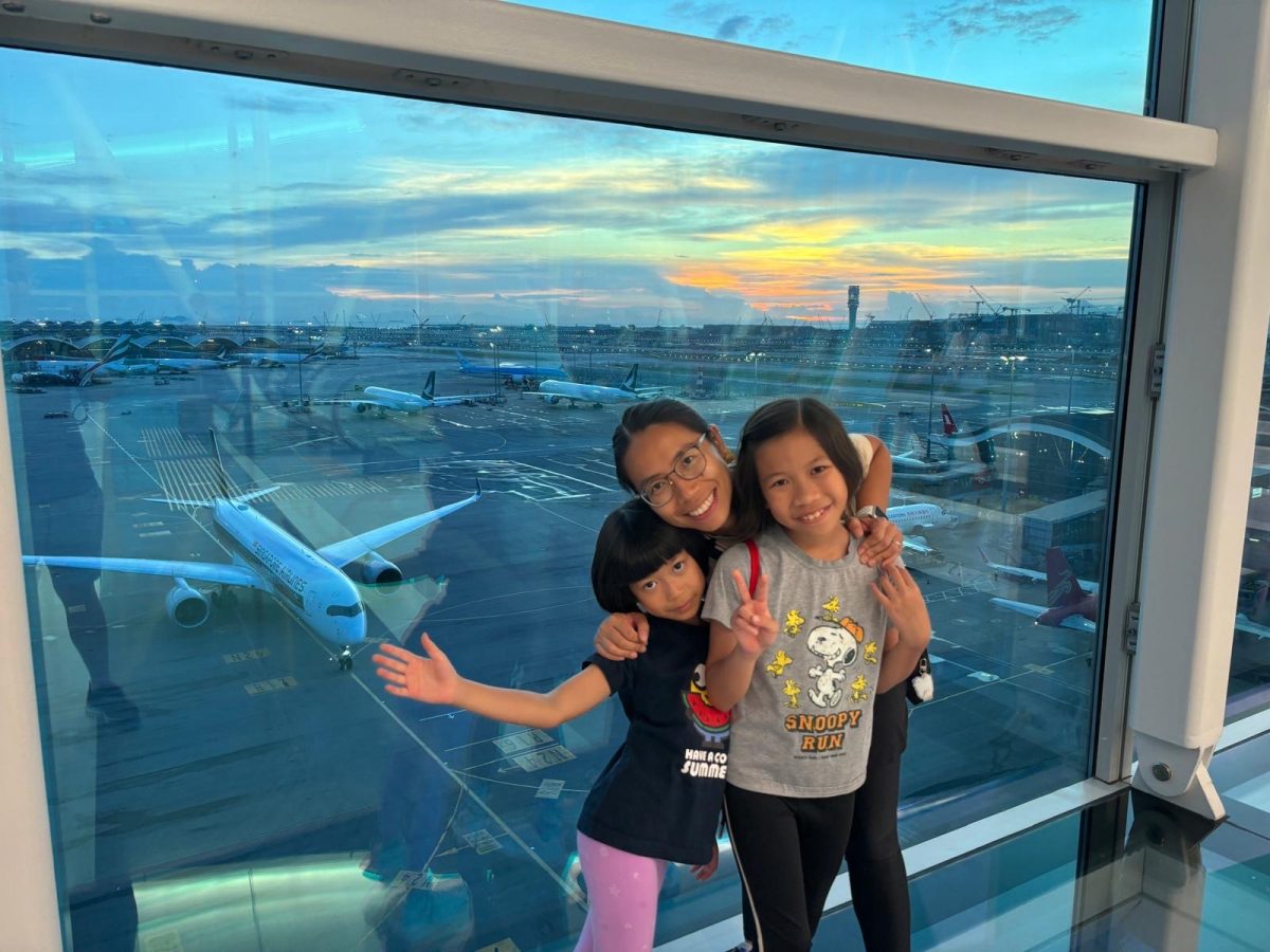 check in好順利,好快搞掂手續,少少擔心嘅係座位安排,短嗰程係2+2,長嗰程係3+1,仲要個1離個3好遠,即是我要獨自照顧兩個小朋友11個鐘~雖然話去程嘅機係夜機,大家會好眼瞓,應該會瞓大多數時間,悶或者煩躁嘅時間應該佔少部份吧?話雖如此,我都嚴陣以待,download定大量電影、卡通、影片係ipad,包括Netflix、Disney+同Youtube樣樣都有啲,又帶咗UNO、啤牌、大富翁deal卡牌,仲有顏色筆、簿,又係$12店買咗迷你砌圖同Nanoblock,零食方便特別帶咗食得最慢嘅童星點心麵幼麵,務求可以occupy晒佢哋嘅時間~雖然長嗰程嘅飛機有機上娛樂,我估計卡通片多數都係普通話或中文字幕,曉就應該ok,詩就搞唔掂可能會孟憎~