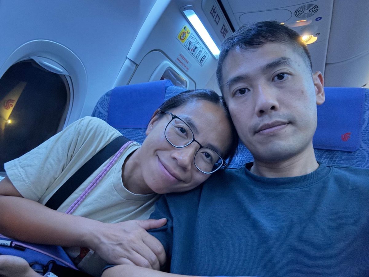 第一程飛機座位係2+2,佢哋未太攰就會好friend可以一齊坐,而且兩個都唔甘心讓媽咪俾對方,所以曉詩兩個自己坐,我可以同老公拍拖坐,輕鬆一下~