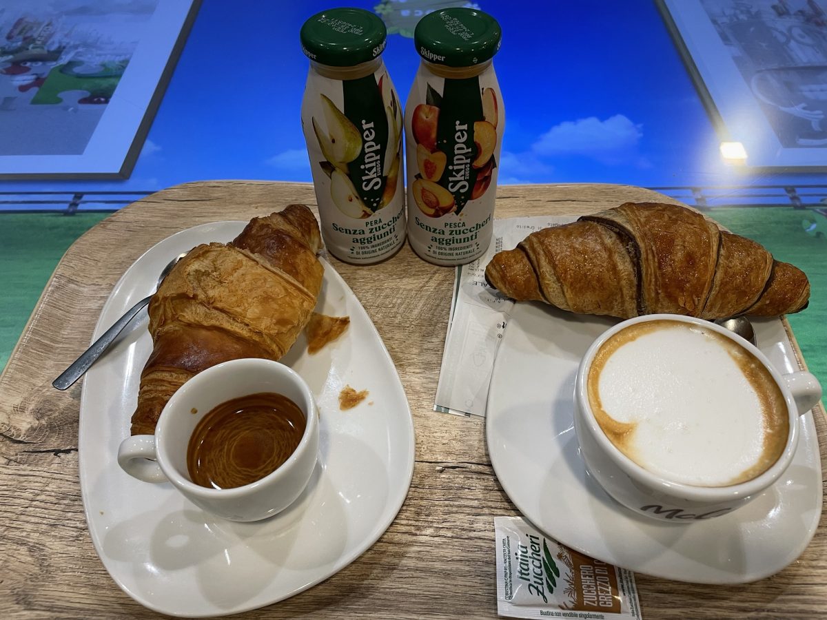 有自助點餐機,yeah,冇咁緊張,同埋原來意大利嘅「McCafe」都真係好意式,我哋好意式咁叫咗兩個牛角包早餐set,爸爸飲expresso,我就飲cappuccino,另外叫咗兩個果汁俾小朋友們~