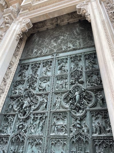 我哋決定,係Cadorna附近暫存行李,跟住就步行20分鐘左右去米蘭地標—-米蘭大教堂,有力嘅話就去埋少少附近嘅景點,因為我哋之後嗰日就去Bologna,而最後一日返嚟搭飛機走亦冇非常多嘅時間,所以今日去得幾多就幾多啦~用app訂好火車站附近商店嘅行李位…以為好近好易搵,對於意大利嘅街道、門牌編號等都唔熟悉,點解嗰間放行李嘅店…好似落咗閘嘅?定係兩邊鋪頭係前後通嘅呢?後面間鋪有個講緊電話嘅男人見到我哋眼望望,遞一遞手好似叫我哋等一等咁,佢好似係紀念品店嘅人,但賣花綠綠遊客T恤或者度假花裙子嘅唔係通常都係大嬸咩?佢講完電話就示意我哋動作快咁堆啲行李入去鋪入面,仲強調自己唔識英文,唔好同佢講咁多嘢,然後問我哋攞存行李嗰個QR code,佢唔係用番商家app嚟scan,而係影咗佢用whatsapp嚟send俾某人…希望我哋唔會第一日就遇到騙子,冇晒啲行李啦~anyway,呢一刻只能信住佢先啦~